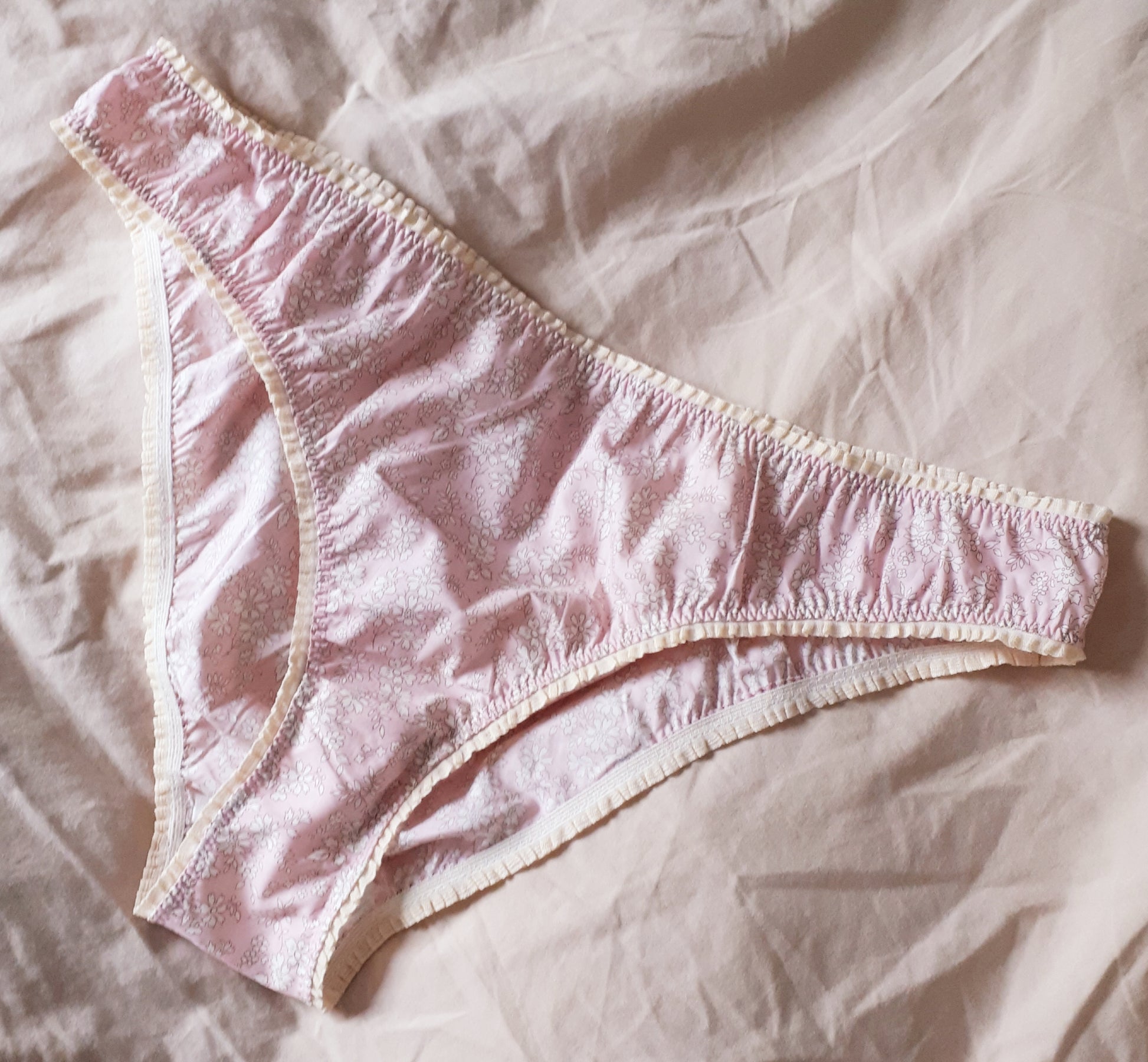 Antipode is warp and weft panties with neat finishes, delicately gathered and slightly high-cut. It's perfect for wearing under a summer dress, for using your pretty scraps of fabric and getting started in lingerie sewing.