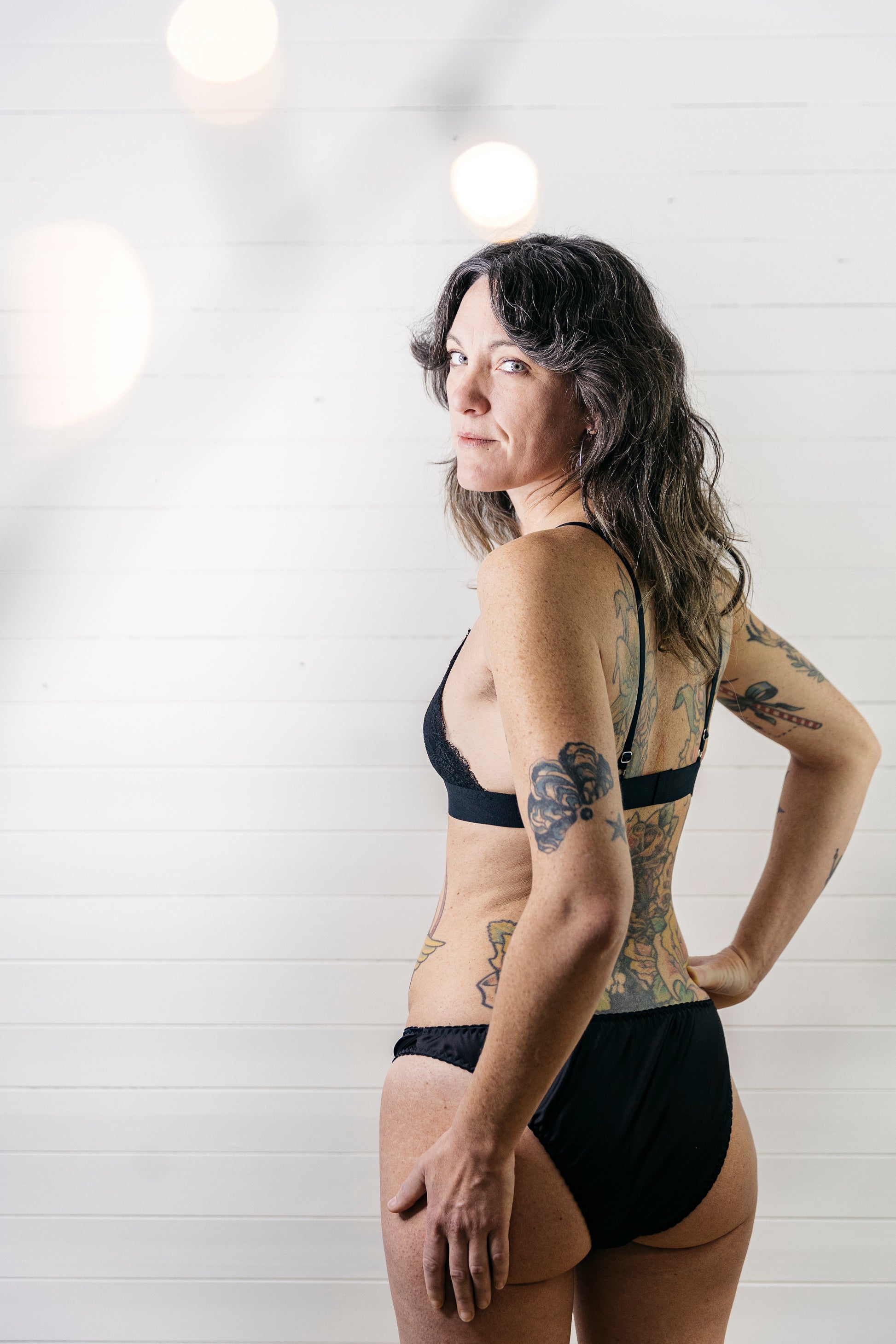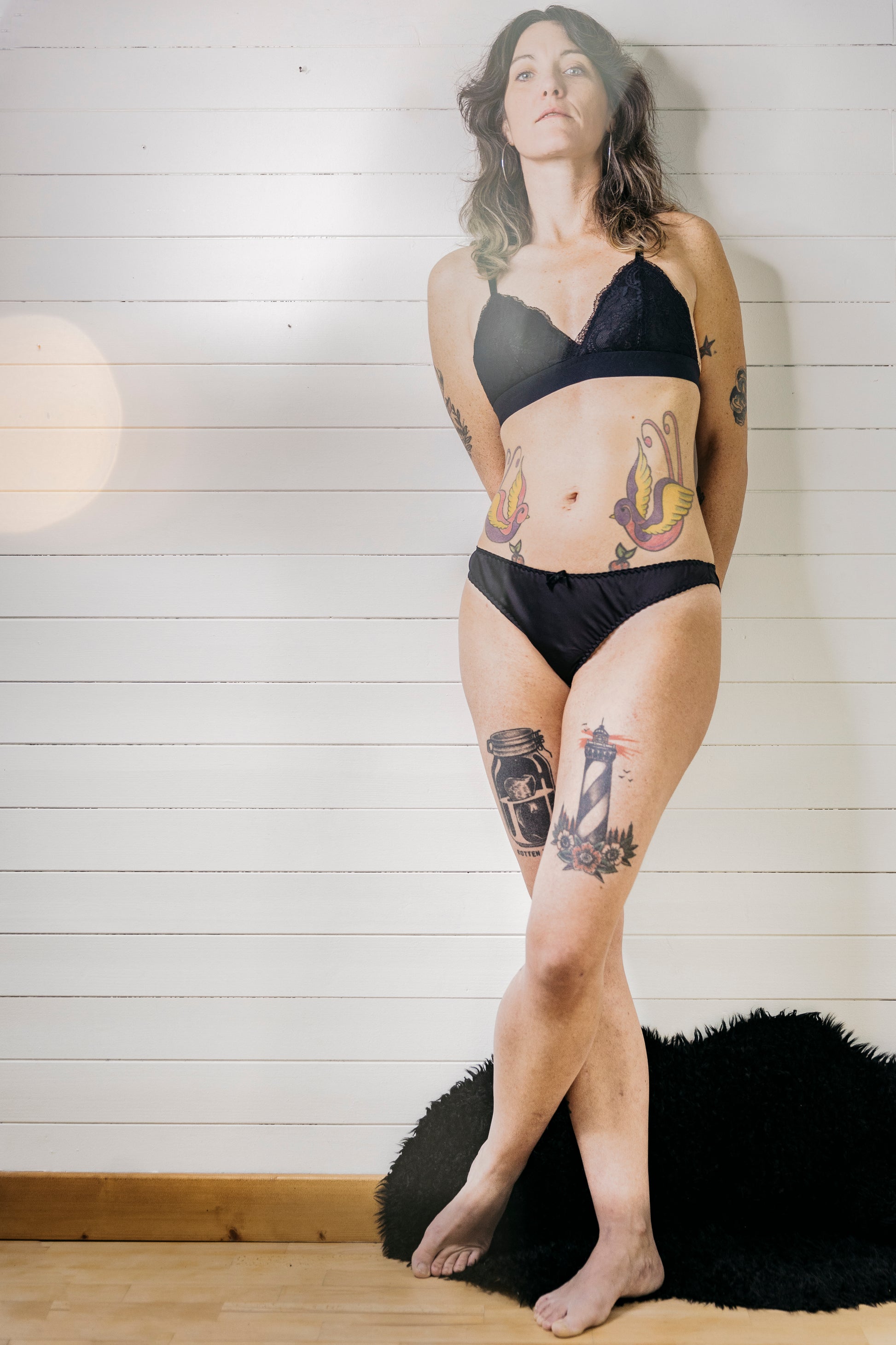 - Version B, timeless and more discreet with an elastic finish with picot.