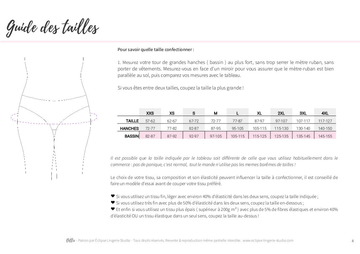 Les mesures sont indiquées en cm / mm. Les marges de coutures sont incluses dans le patron.