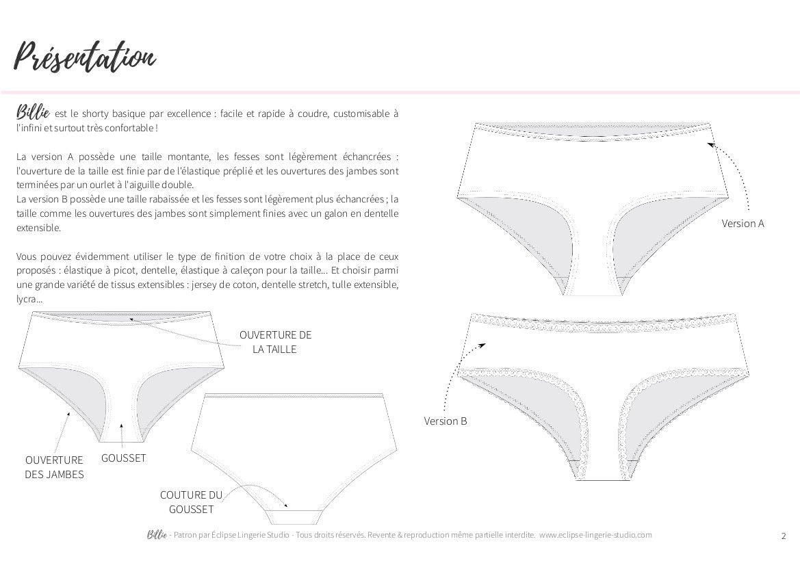 Billie also includes an extension for a jersey or scalloped lace waistband, which fits the A & B versions of the shorty. Guaranteed comfort!
