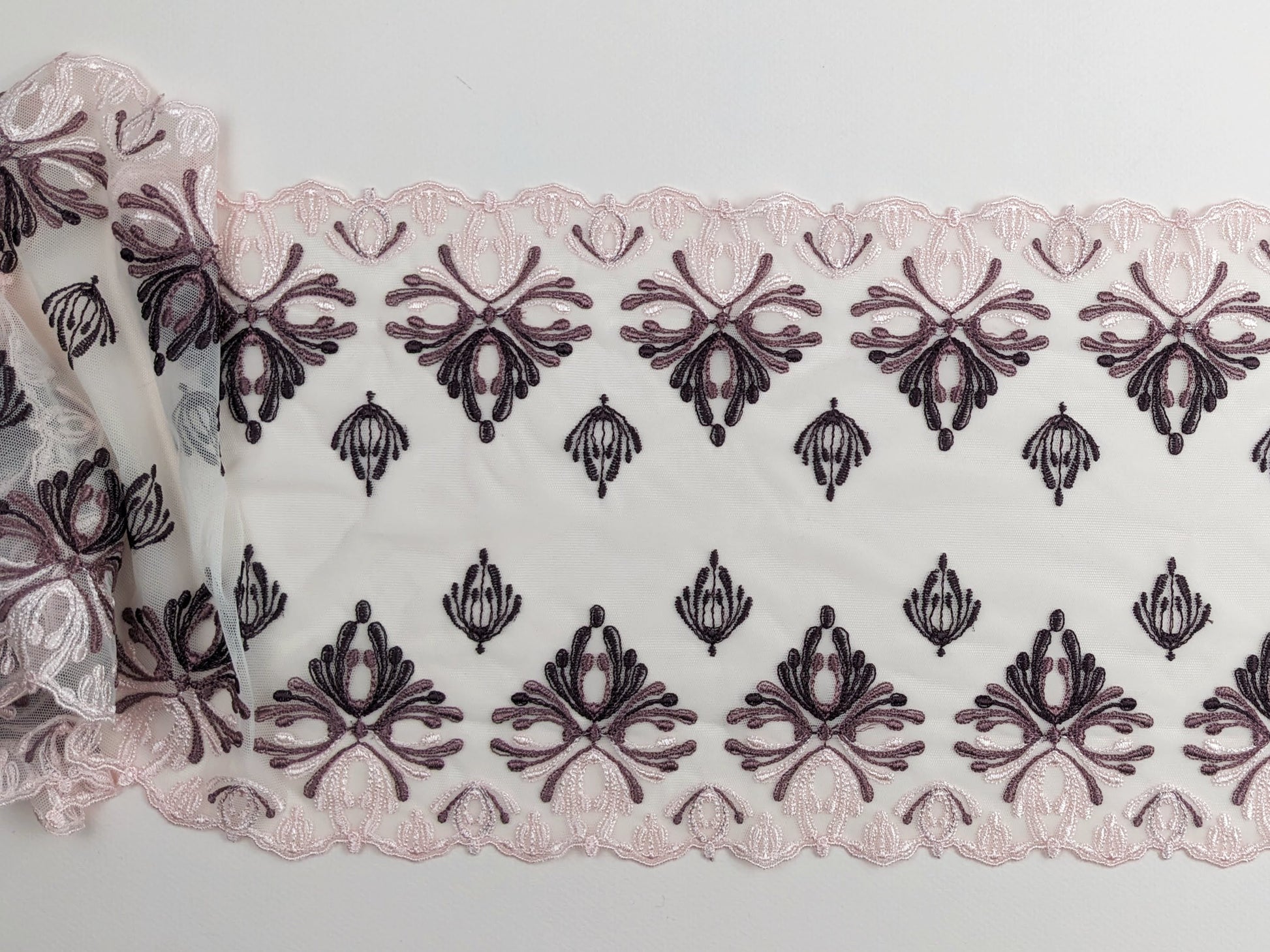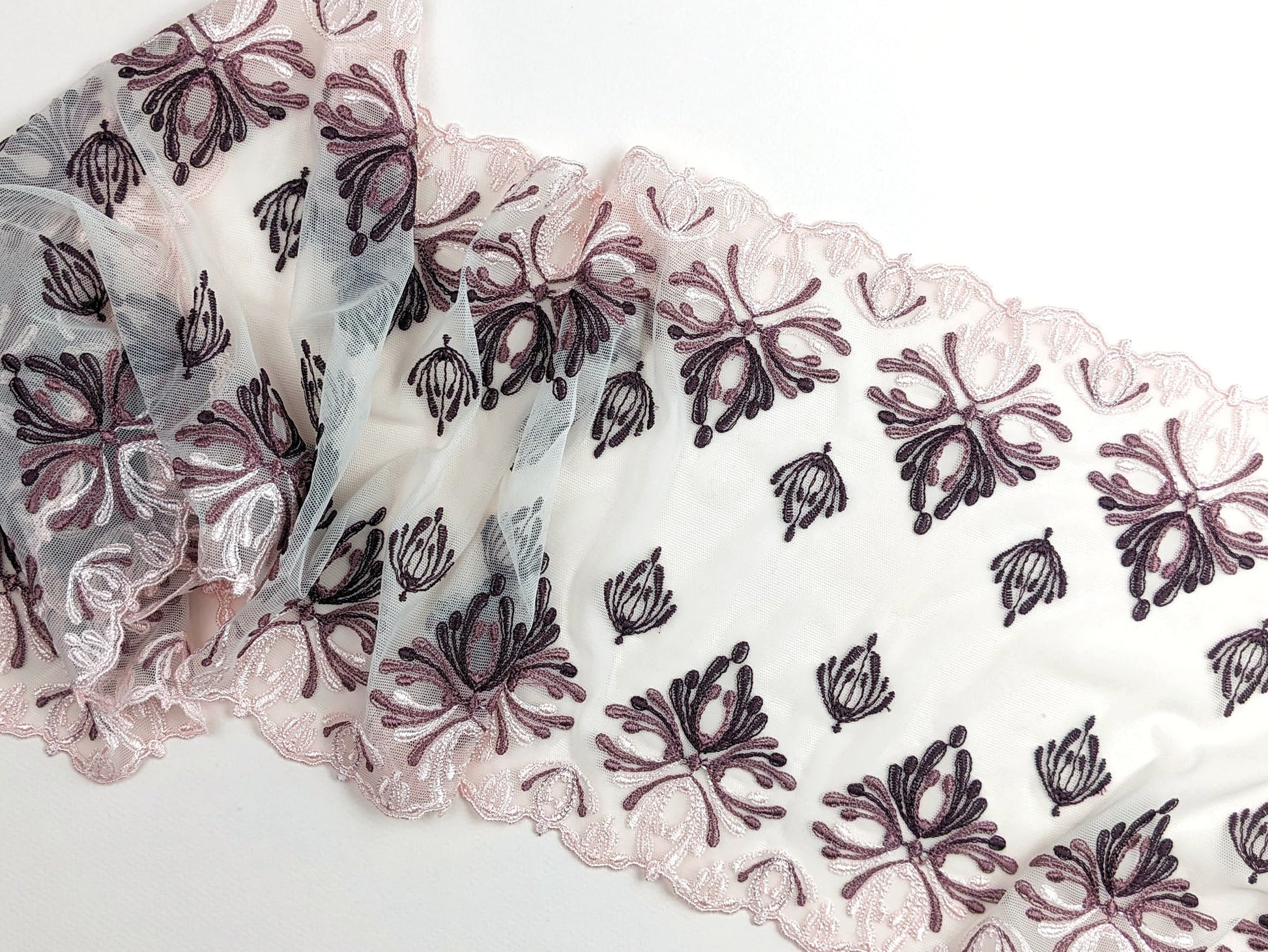 Coupon tulle brodé rose, 150cm