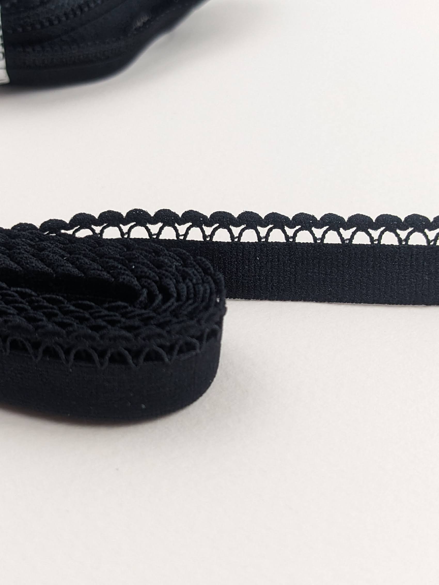 - 150 cm d'élastique à bretelle noir, largeur 12mm (Standard) ou 15mm (Large)