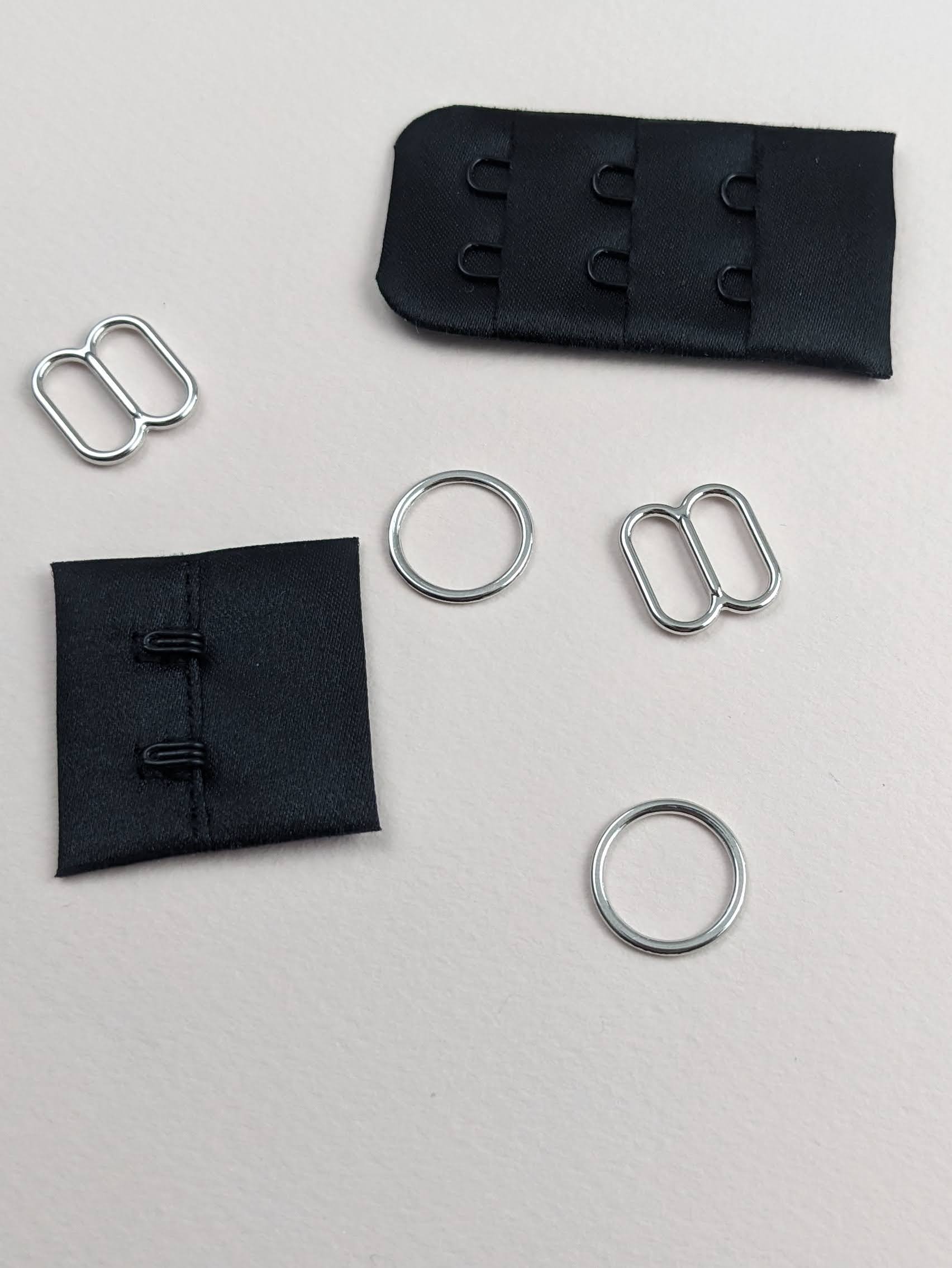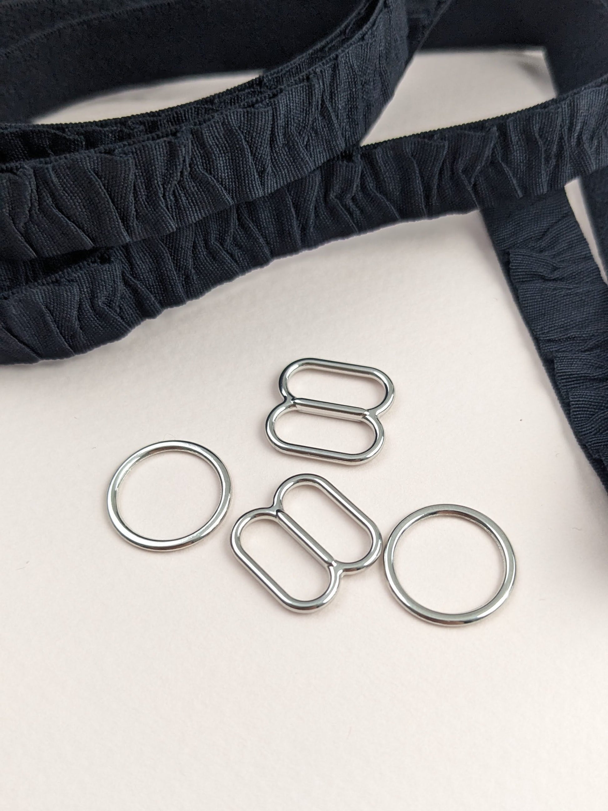- 2 régleurs à bretelles couleur argent, largeur 12mm (standard) OU 4 régleurs argents, largeur 15mm (Large)