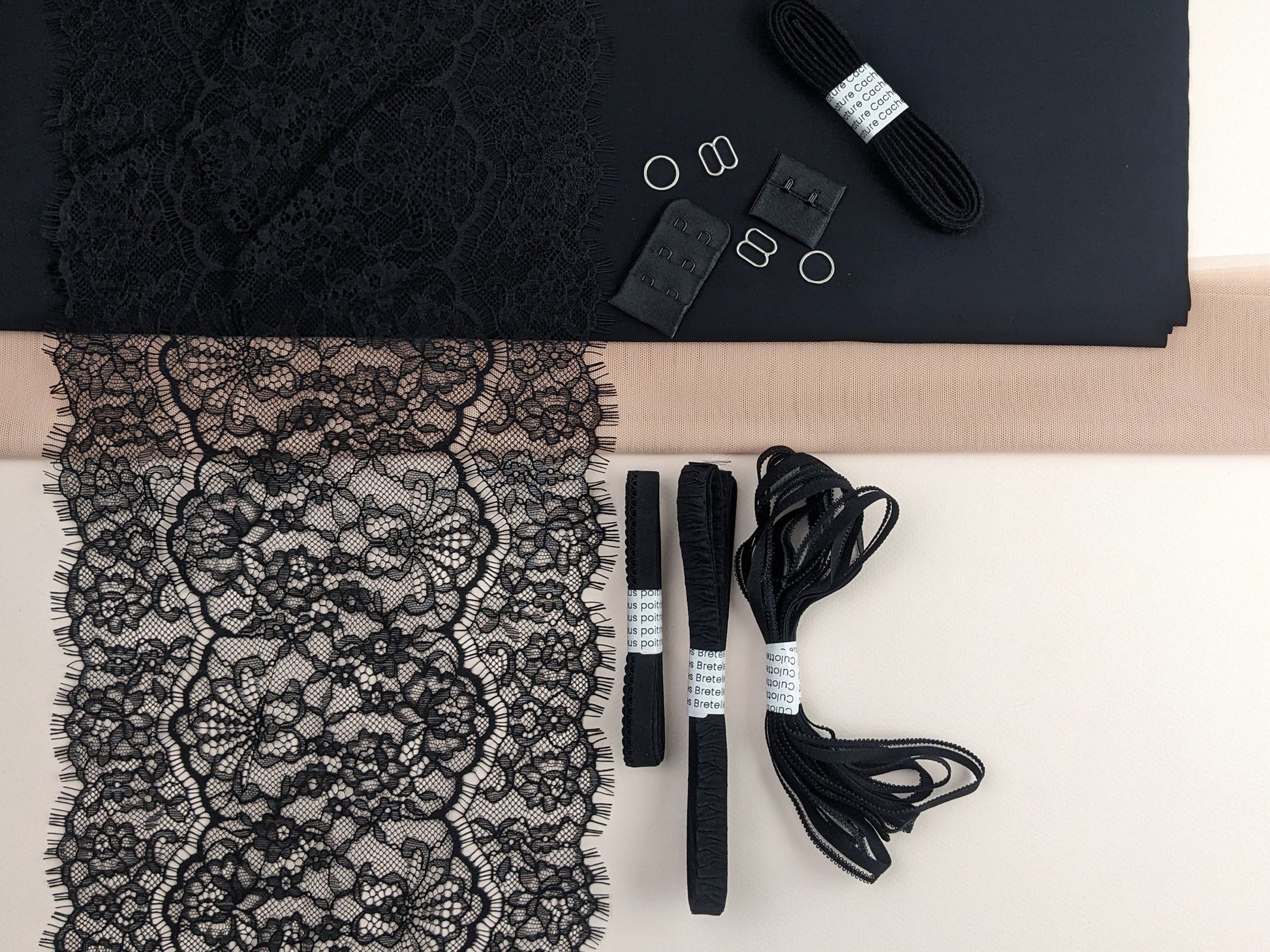 - 50 x 140 cm de maille lycra noire, pour la culotte et le dos du soutien-gorge