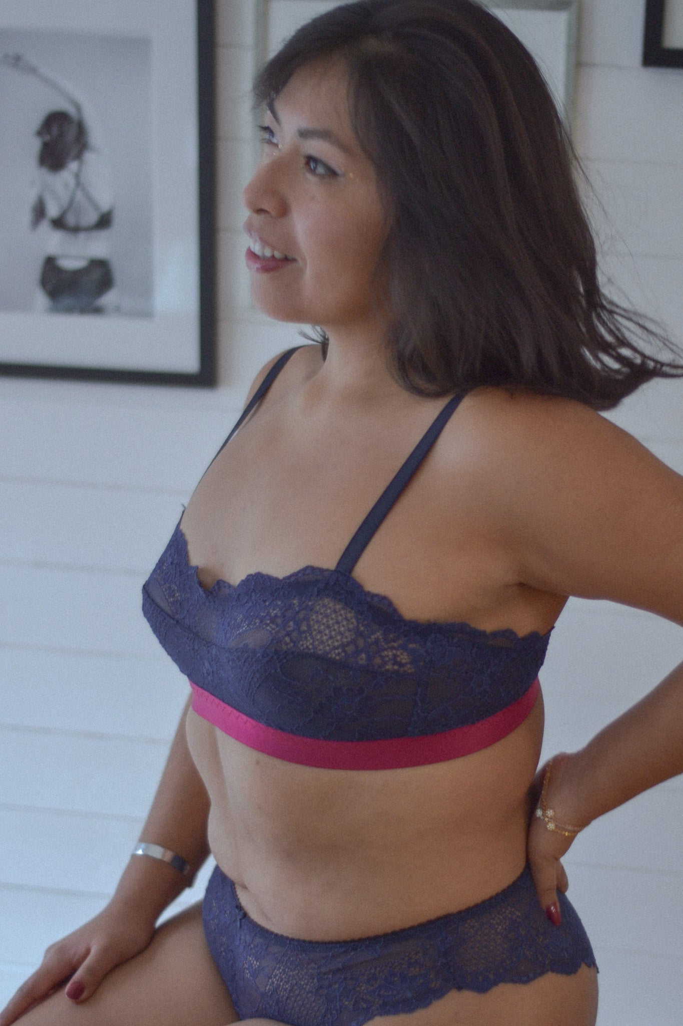 Le dos et les bas bonnets du soutien-gorge sont doublés pour plus de maintien et des finitions impeccables, tandis que le haut du bonnet reste non doublé afin de préserver la transparence et la légèreté de la dentelle. Le bas du soutien-gorge, fini par un large élastique, assure le maintien tout en apportant une touche contemporaine.