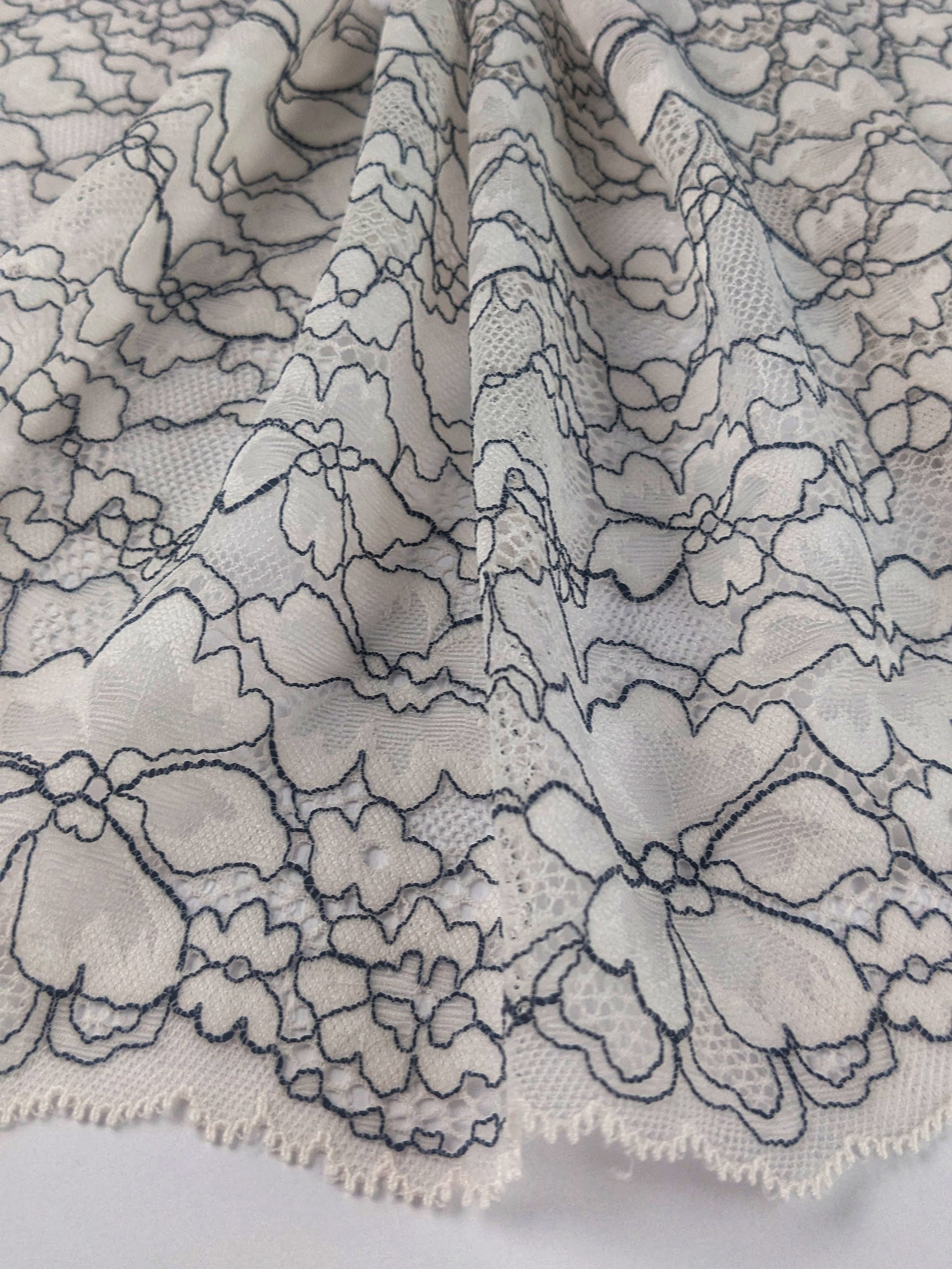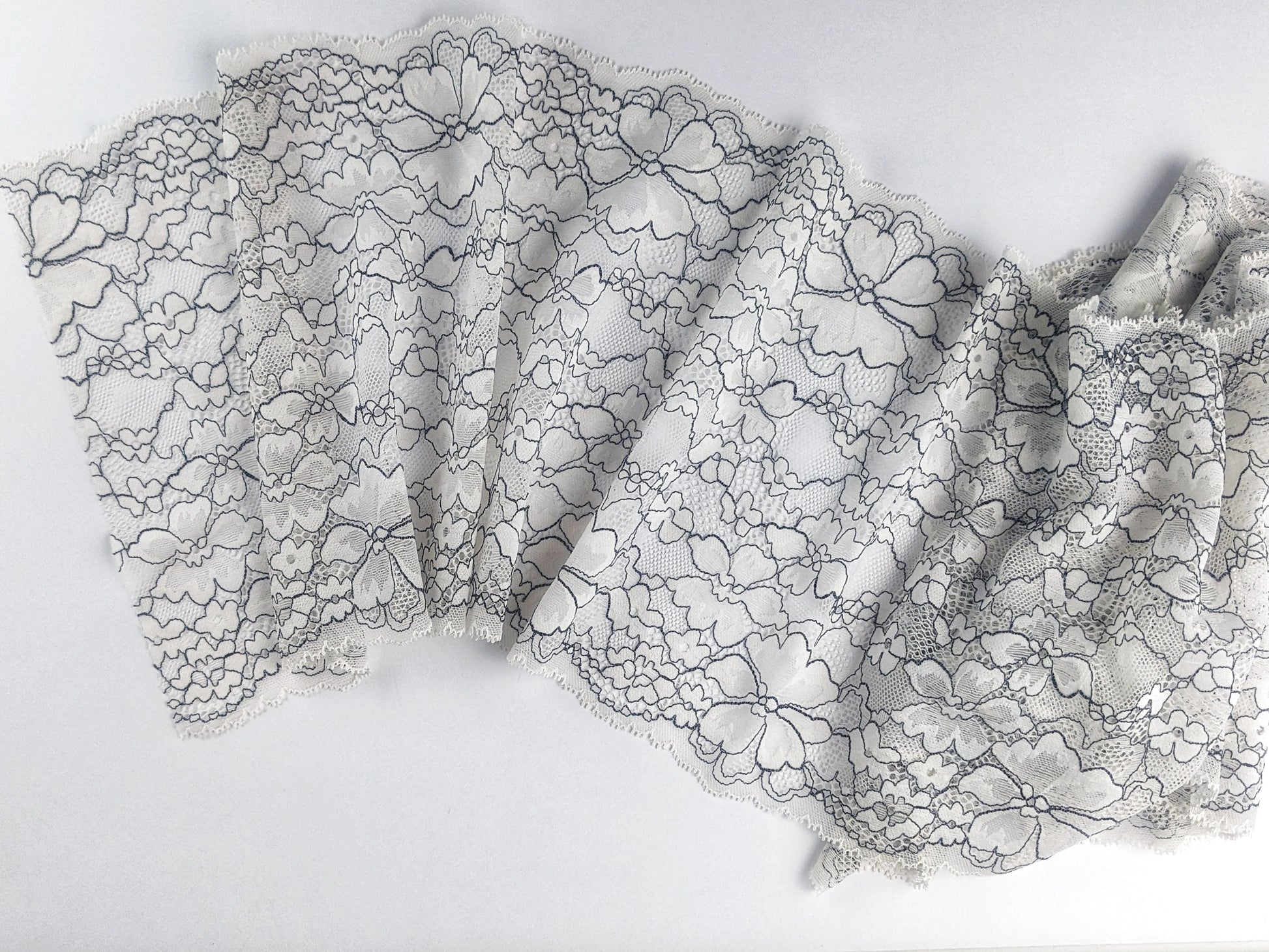 Coupon de 200 x 21 cm de dentelle extensible noire et blanche.
